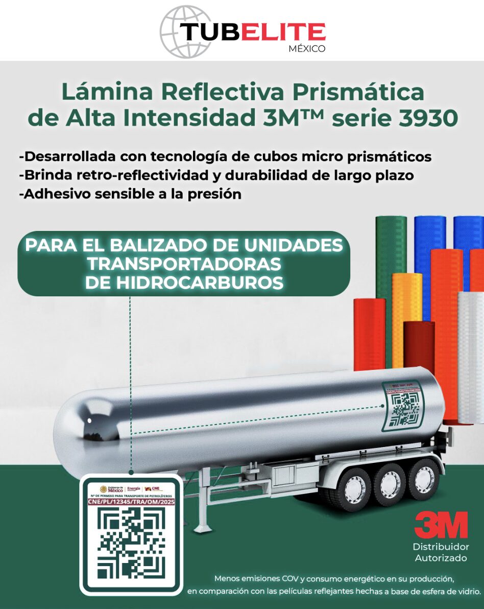 ¿Balizado de unidades transportadoras de hidrocarburos? Utiliza Lámina Reflectiva Prismática de…