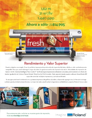 hasta 21 m /hr. Sistema Intelligent Pass Control™ de Roland para impresiones altamente saturadas prácticamente sin efecto de