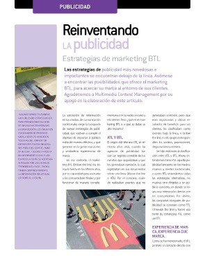 DE UN CINE, LOS CASILLEROS DE y verdaderas experiencias de agencias de publicidad ha- Se hizo entonces la clasifica- una interacción sorpresiva con Esta es una de las caracterís- estrategia BTL suele ser significa- BTL creció cerca de diez puntos